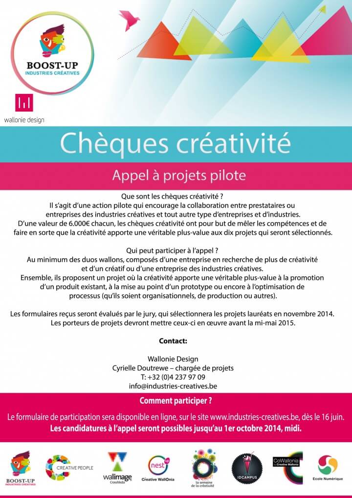 Les chèques créativité wallons sont arrivés le 16 juin 2014, à l’initiative du projet Wallonia European Creative District !